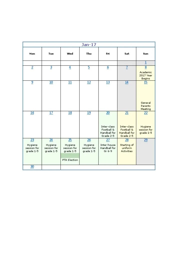 Academic Calender 2017 PDF